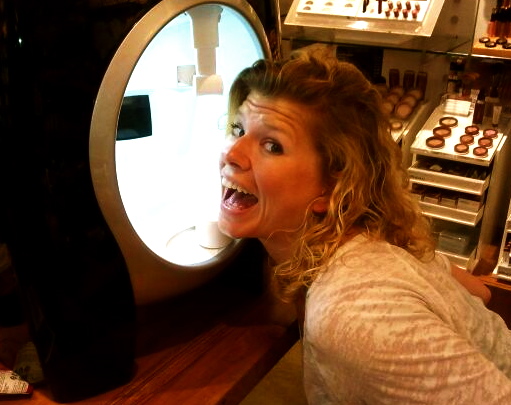 S: “Ok, I know this is silly, but would you mind taking my picture? My niece always drags me into this store and insists that I would look “sick” wearing these clothes, and I always tell her ‘Chloe, Aunty Clara is way too old to wear these clothes’ and her 14th birthday is tomorrow so I want to send her a picture of how silly I look *along with a glow in the dark tongue ring*.”